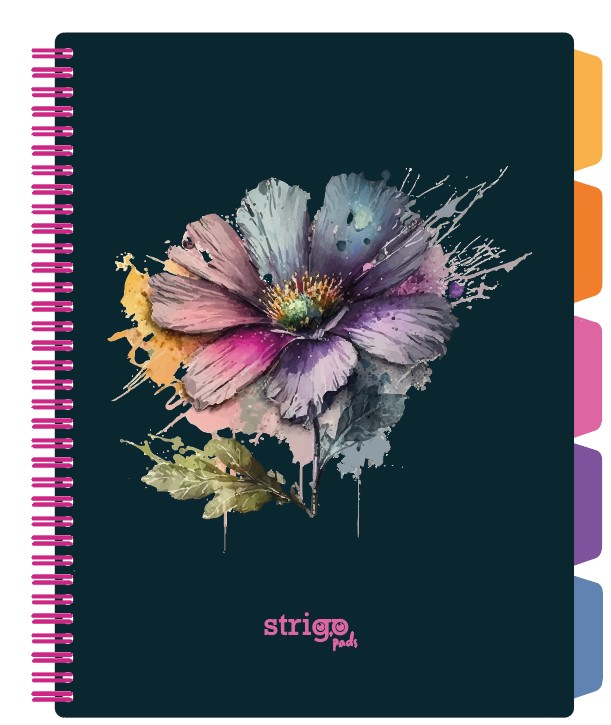 Caiet cu spira A4, 100file, matematica, 5 separatoare, Project Book Flori, Strigo Pads, PADS077