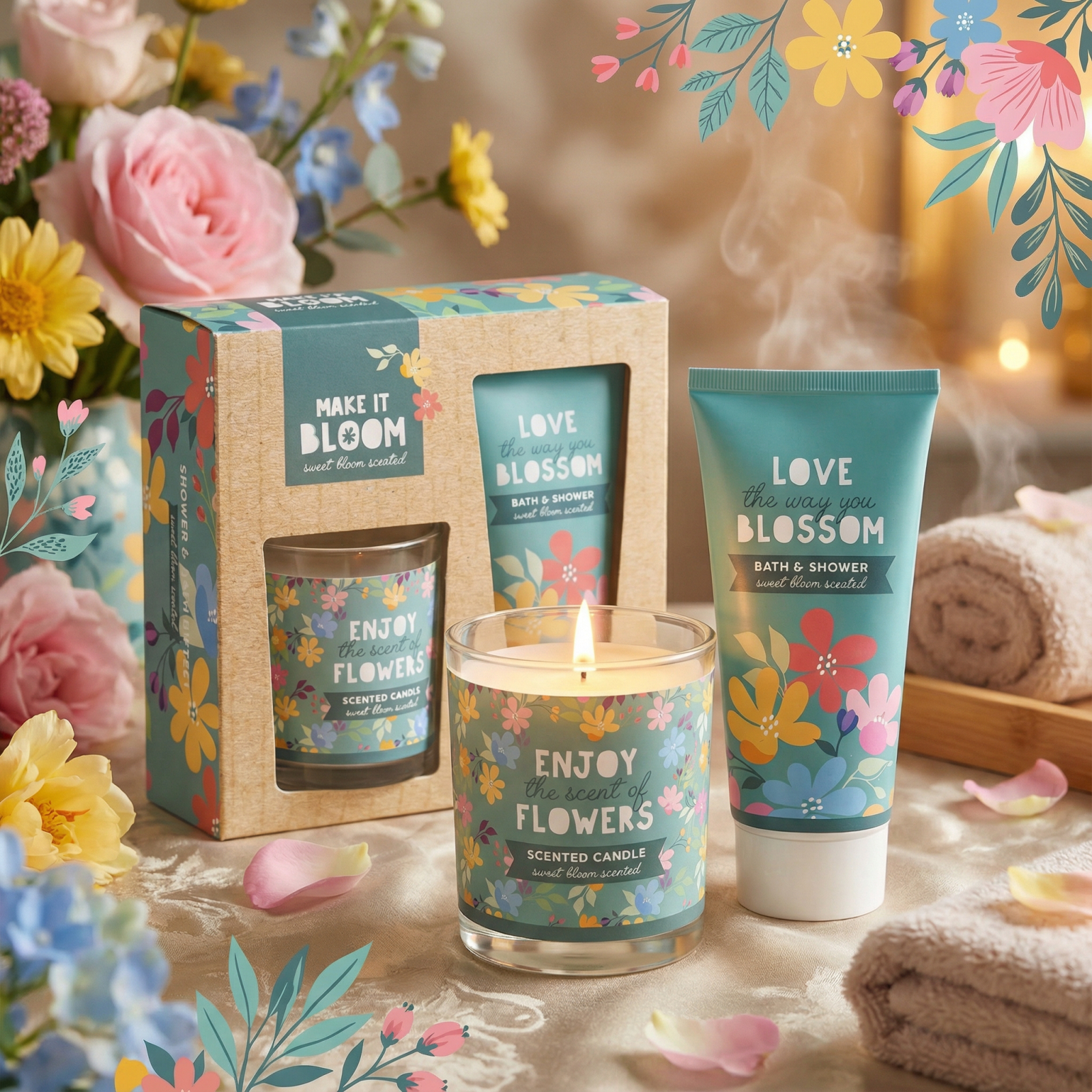 Set cadou MAKE IT BLOOM - FLOWER POWER (lumanare parfumata + gel dus)