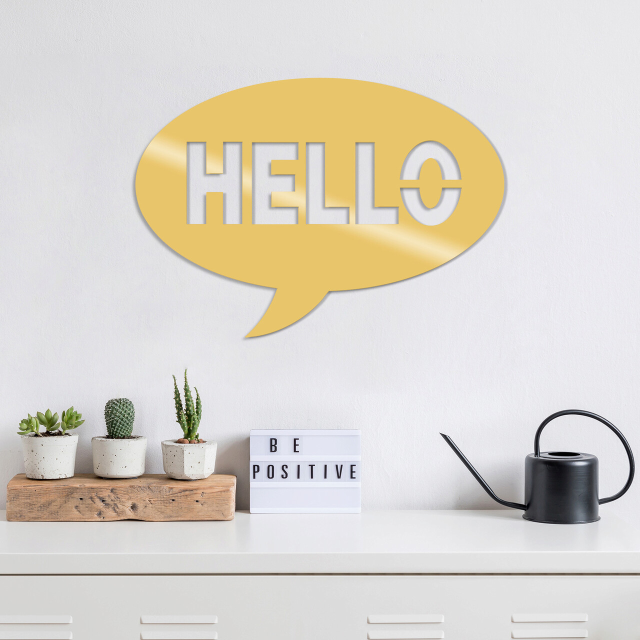 Decoratiune de perete, Hello Metal Decor, Dimensiune: 49 x 35 cm, Auriu