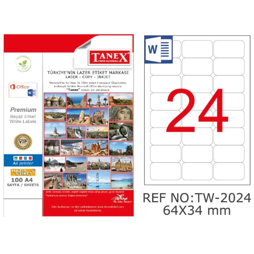 Etichete autoadezive albe 24/A4, 64,6x33,8mm, 100coli/cutie, Tanex