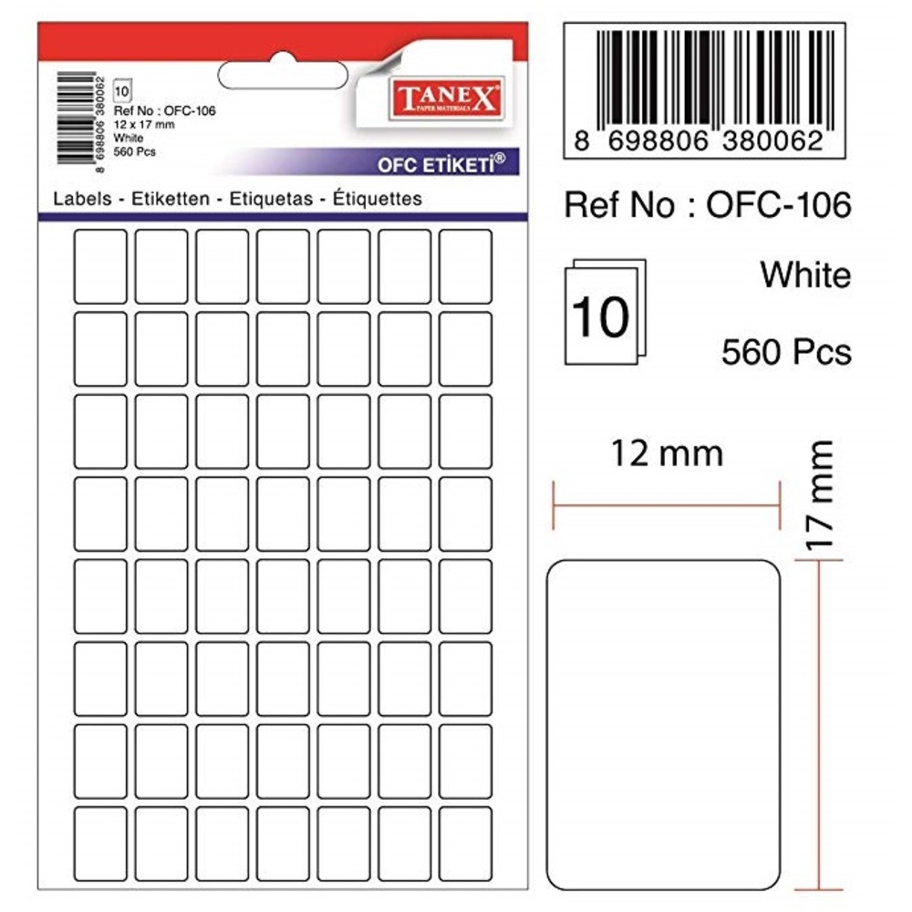 Etichete autoadezive dreptunghiulare, 12x17mm, 560buc/set, 10coli/set, albe, Tanex