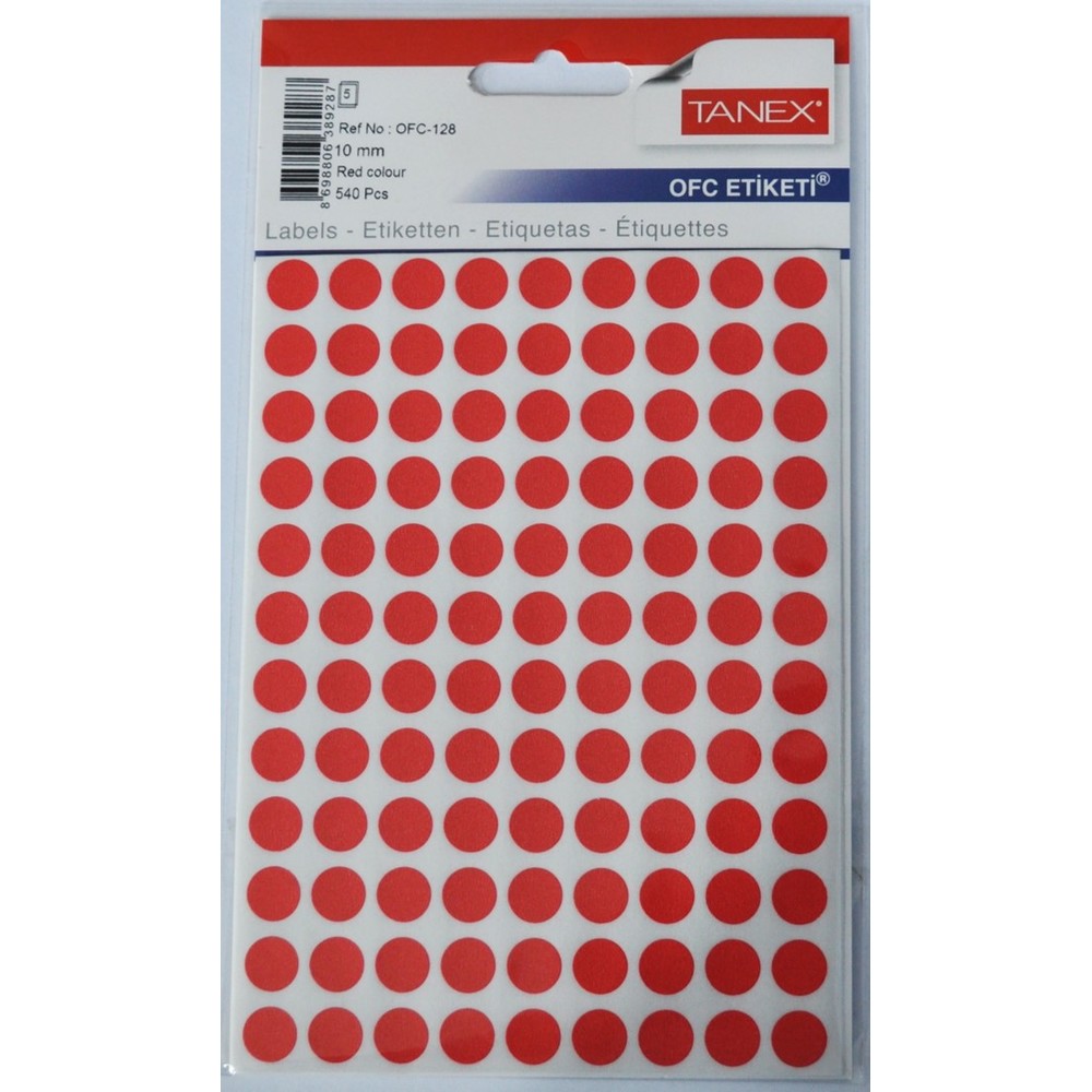 Etichete autoadezive rotunde, diam.10mm, 540buc/set, 5coli/set, rosu, Tanex