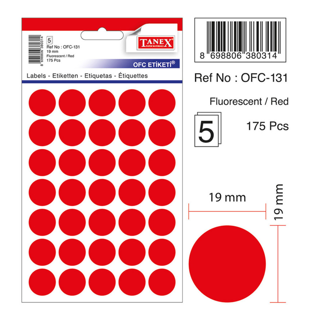 Etichete autoadezive rotunde, diam.19mm, 175buc/set, 5coli/set, rosu, Tanex