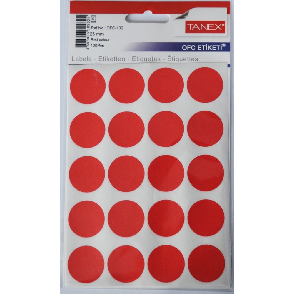 Etichete autoadezive rotunde, diam.25mm, 100buc/set, 5coli/set, rosu, Tanex