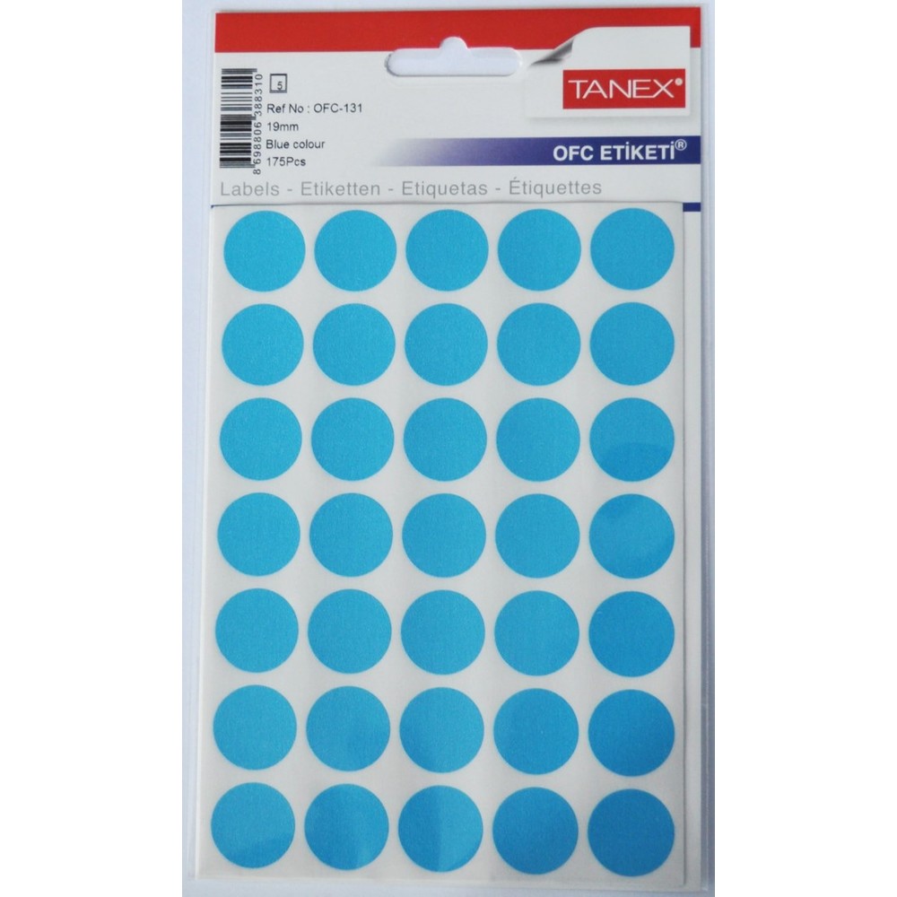 Etichete autoadezive rotunde, diam.19mm, 175buc/set, 5coli/set, albastru, Tanex