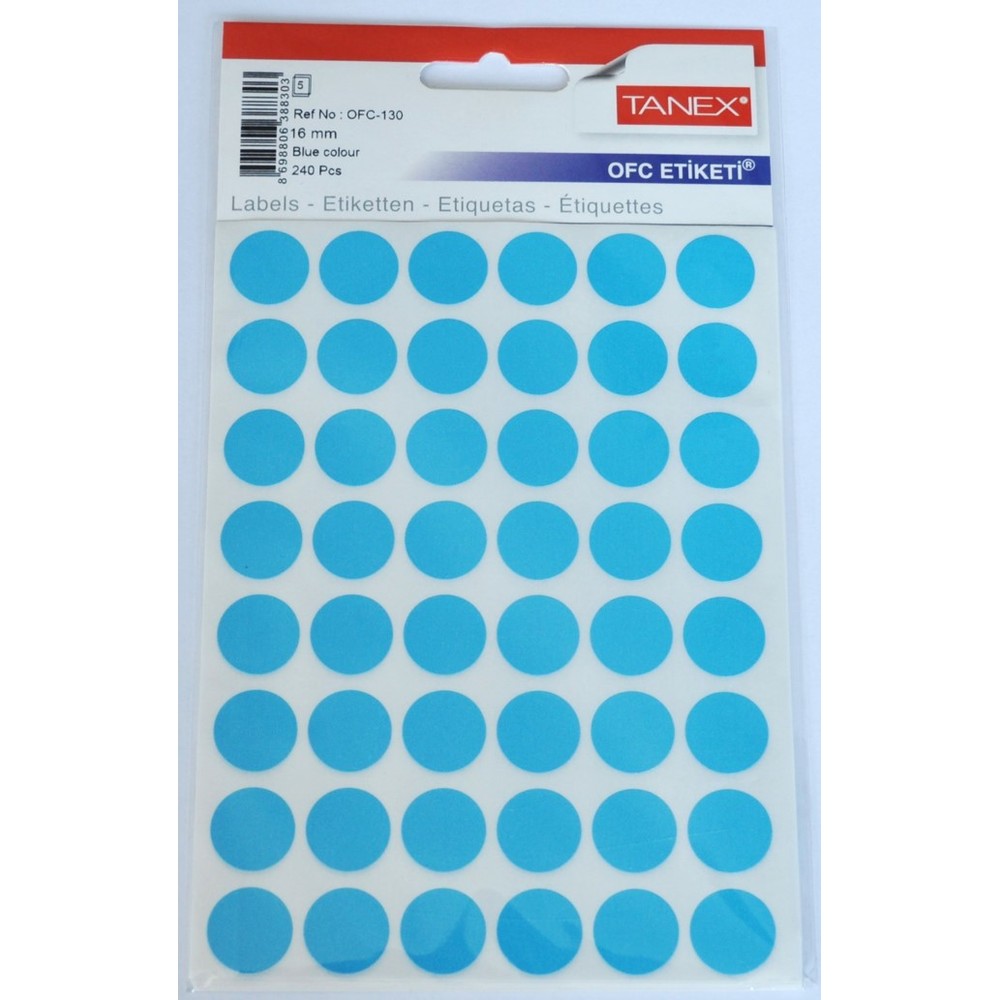 Etichete autoadezive rotunde, diam.16mm, 240buc/set, 5coli/set, albastru, Tanex