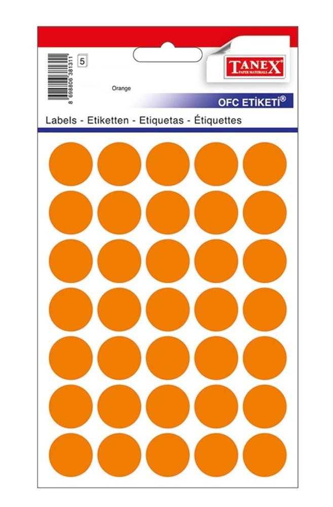 Etichete autoadezive rotunde, diam.19mm, 175buc/set, 5coli/set, portocaliu, Tanex