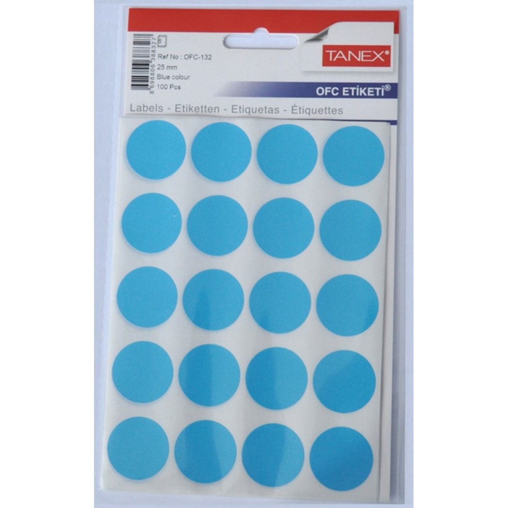 Etichete autoadezive rotunde, diam.25mm, 100buc/set, 5coli/set, albastru, Tanex