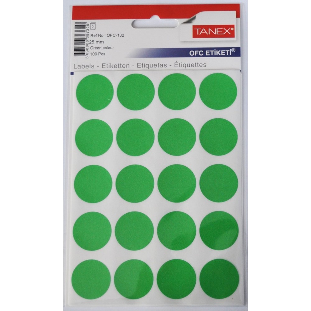 Etichete autoadezive rotunde, diam.25mm, 100buc/set, 5coli/set, verde, Tanex