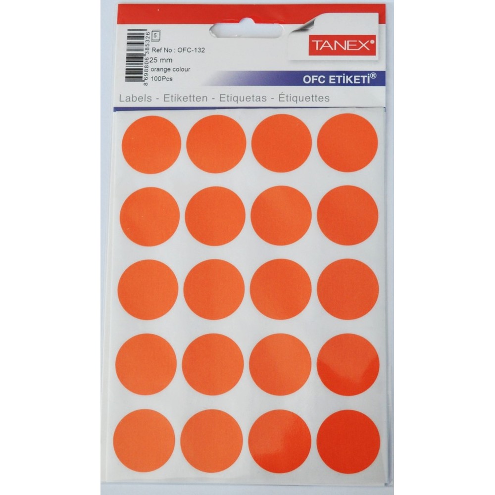 Etichete autoadezive rotunde, diam.25mm, 100buc/set, 5coli/set, portocaliu, Tanex