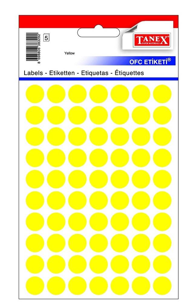 Etichete autoadezive rotunde, diam.19mm, 175buc/set, 5coli/set, galben, Tanex