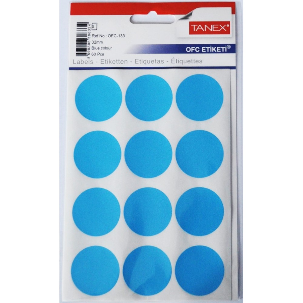 Etichete autoadezive rotunde, diam.32mm, 60buc/set, 5coli/set, albastru, Tanex