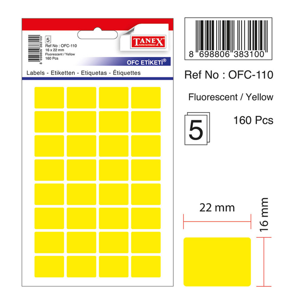 Etichete autoadezive dreptunghiulare, 16x22mm, 160buc/set, 5coli/set, galben fluorescent, Tanex
