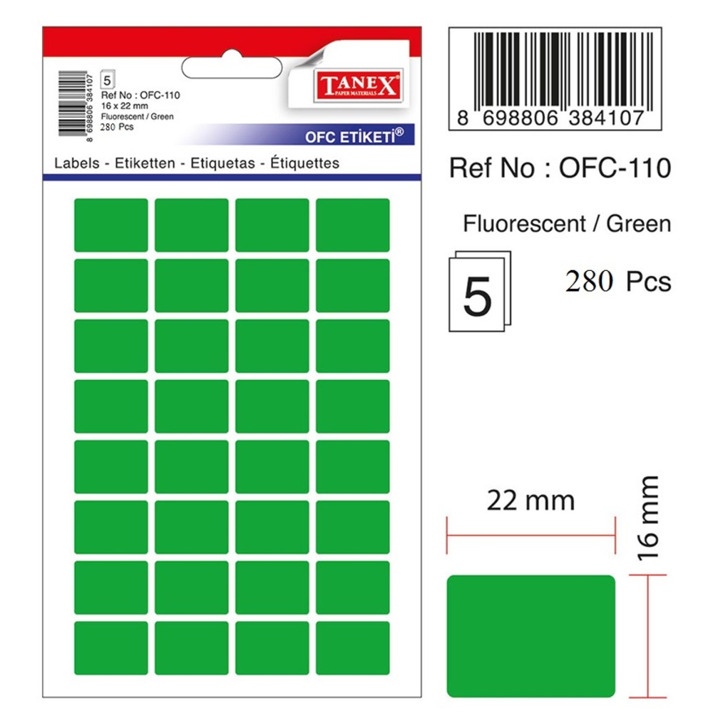Etichete autoadezive dreptunghiulare, 16x22mm, 160buc/set, 5coli/set, verde fluorescent, Tanex