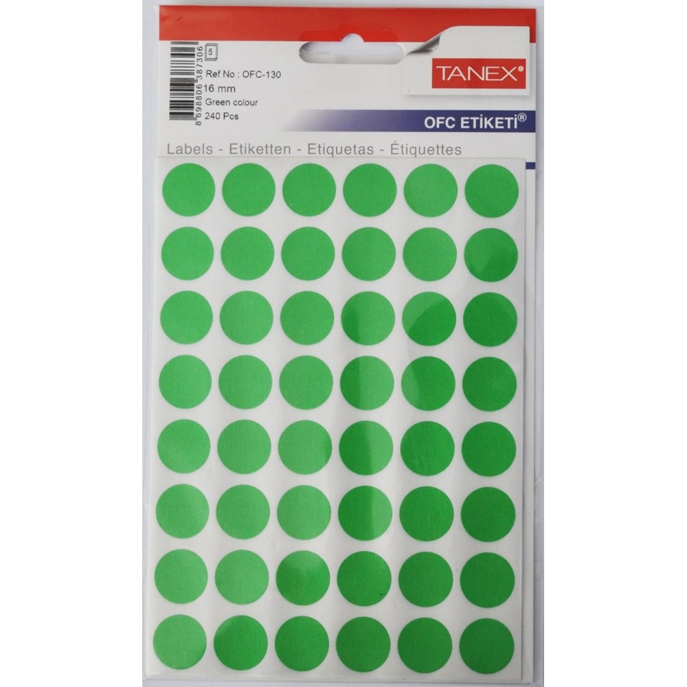 Etichete autoadezive rotunde, diam.16mm, 240buc/set, 5coli/set, verde, Tanex
