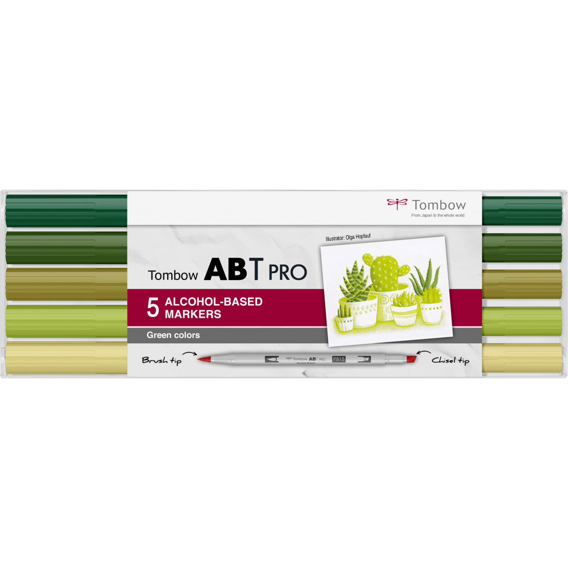 Marker dual brush, 2 varfuri, 5buc/set, ABT Pro Green Colours Tombow