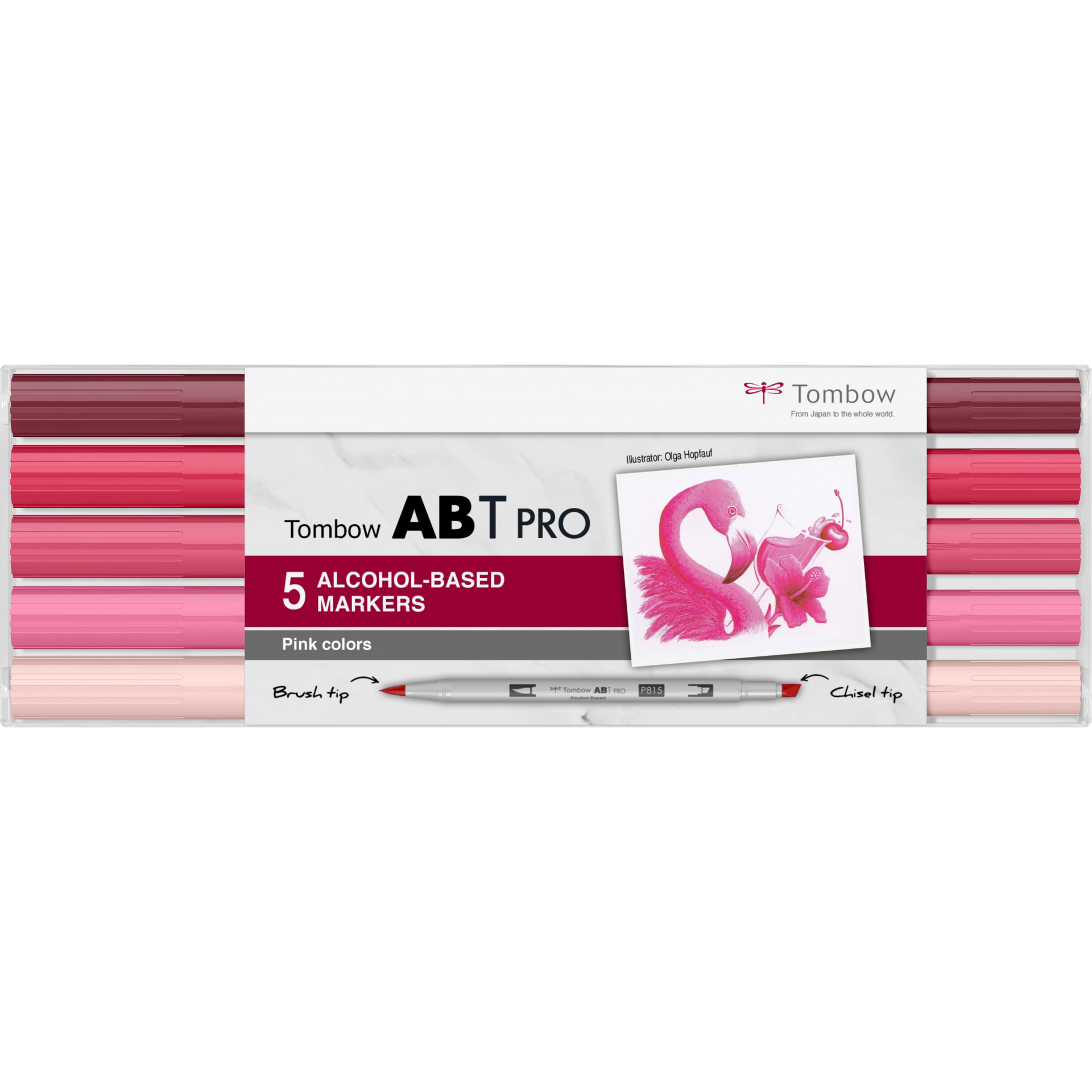Marker dual brush, 2 varfuri, 5buc/set, ABT Pro Pink Colors Tombow