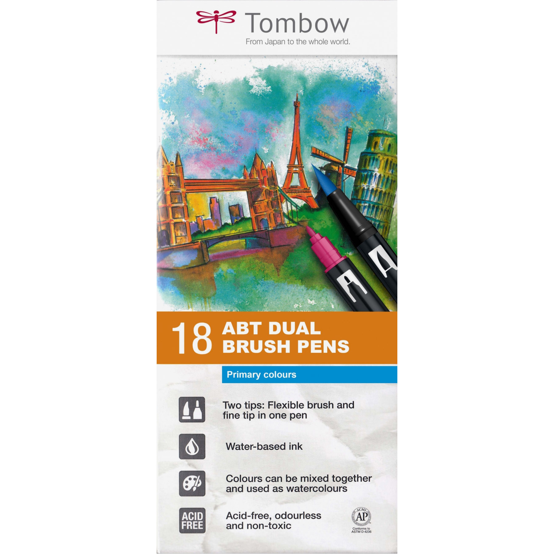 Marker dual brush, 2 varfuri, 18buc/set, Watercoloring ABT Primary Colours Tombow