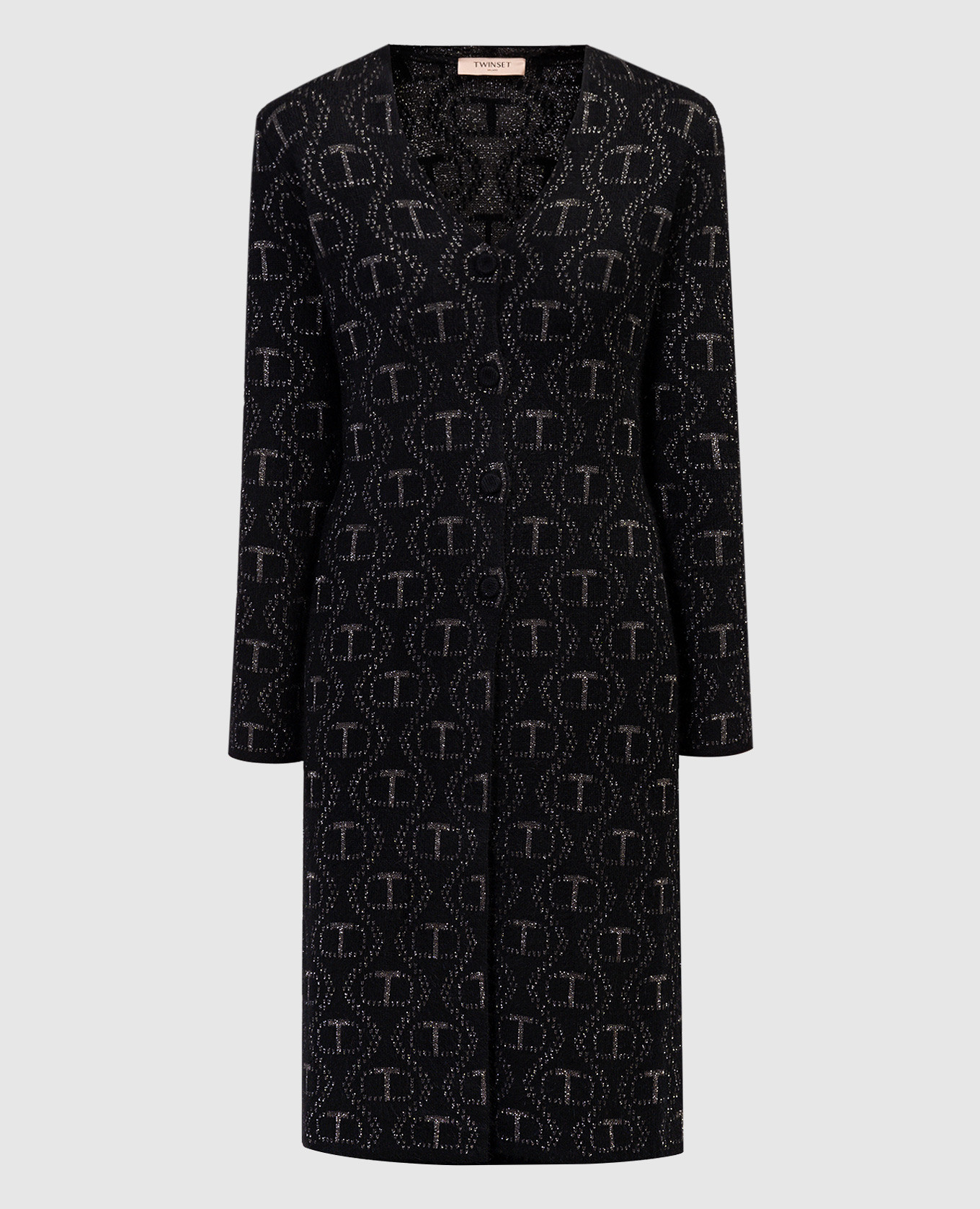 Black elongated cardigan in a logo pattern with lurex Twinset