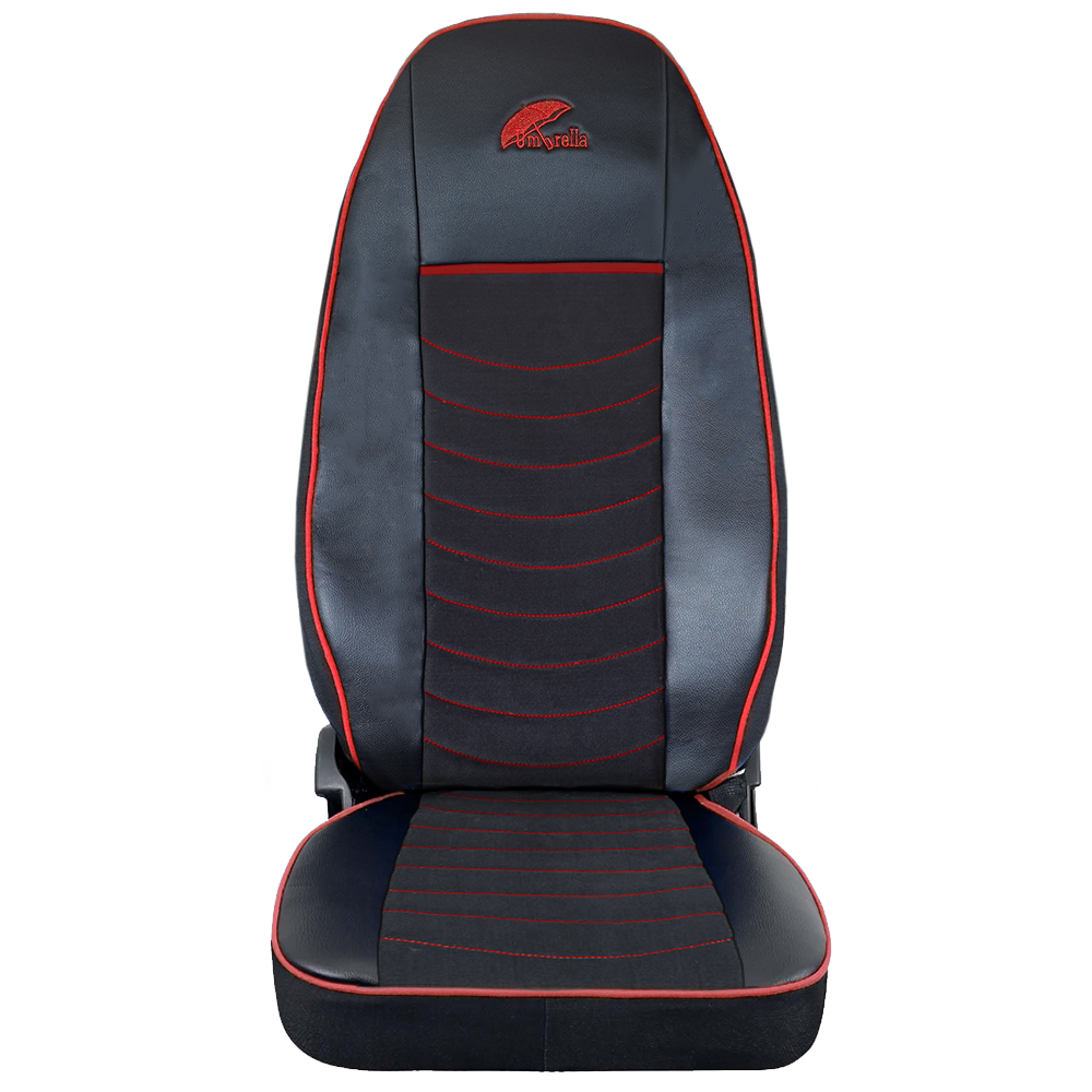 Set huse scaun truck umbrella pentru scania seria r 2006-2020 piele ecologica neagra + velvet rosu