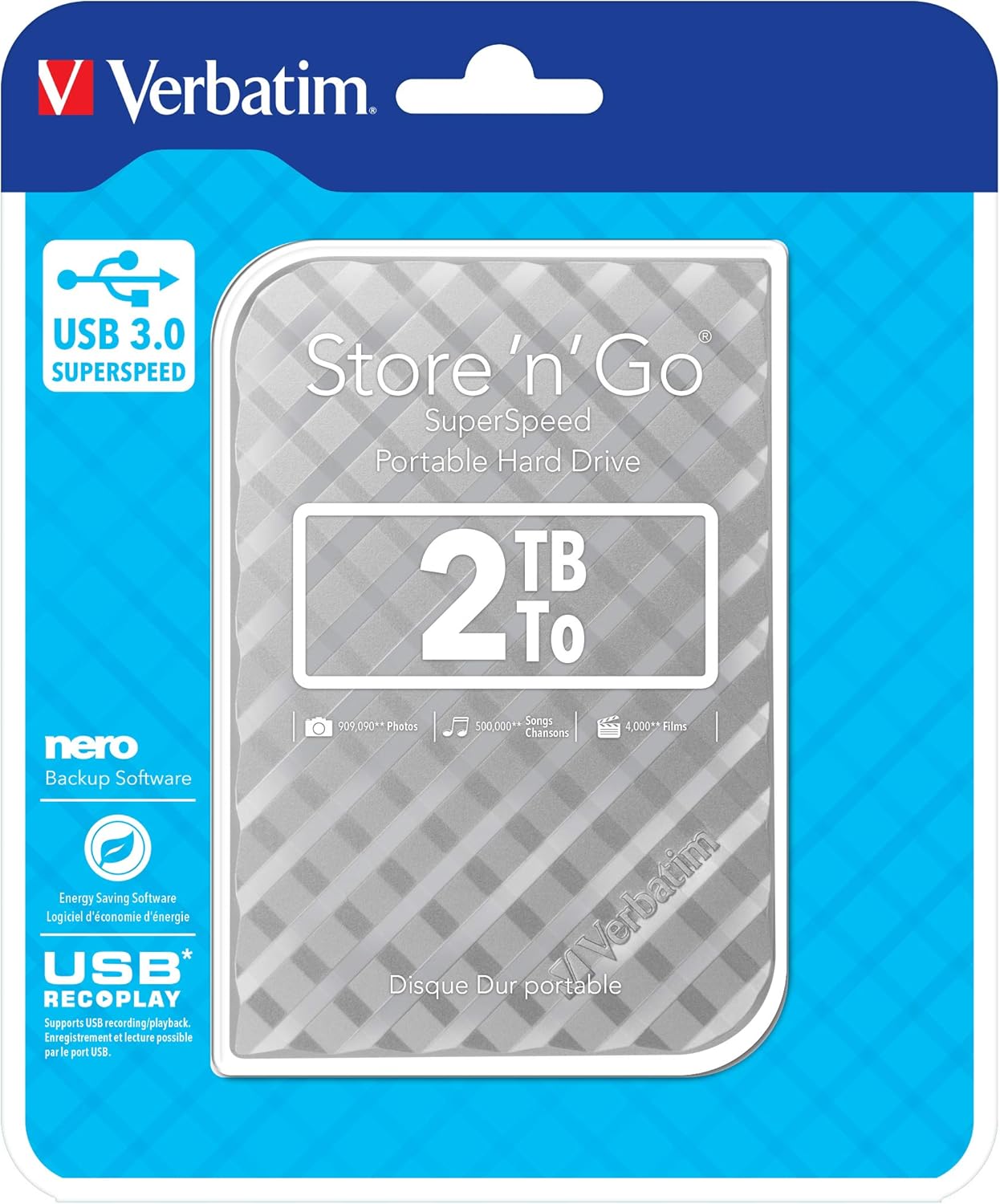 Hard disk extern, 2TB, USB 3.0, argintiu, Store 'n Go Verbatim 53198