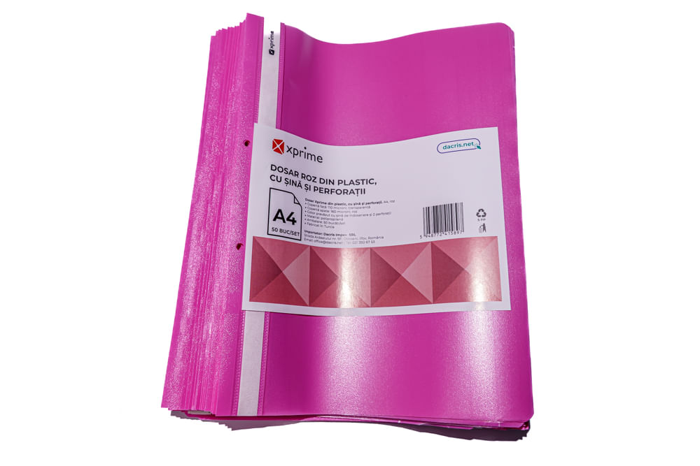 Dosar cu sina Xprime A4 plastic diverse culori 50 bucati/set roz