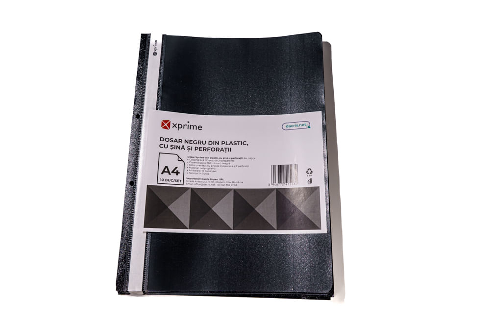 Dosar cu sina Xprime A4 plastic diverse culori 10 bucati/set negru