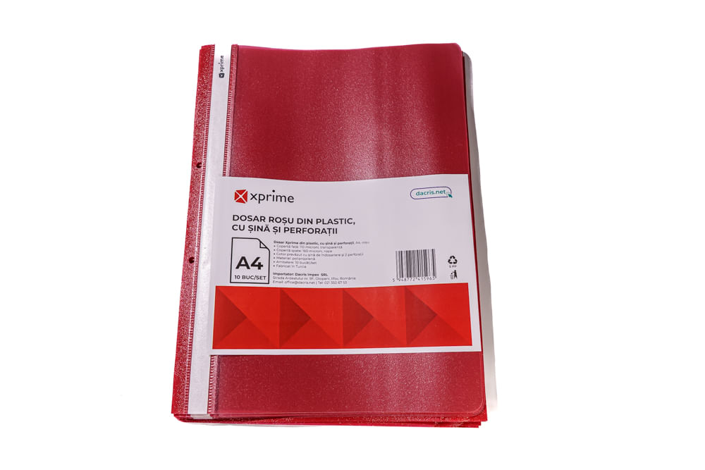 Dosar cu sina Xprime A4 plastic diverse culori 10 bucati/set rosu