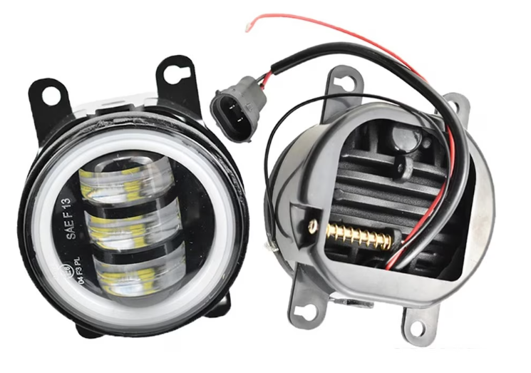 Set 2 proiectoare ceata cu DRL Angel Eyes 89 milimetri 3.5” cu 3 functii alb cu semnal galben