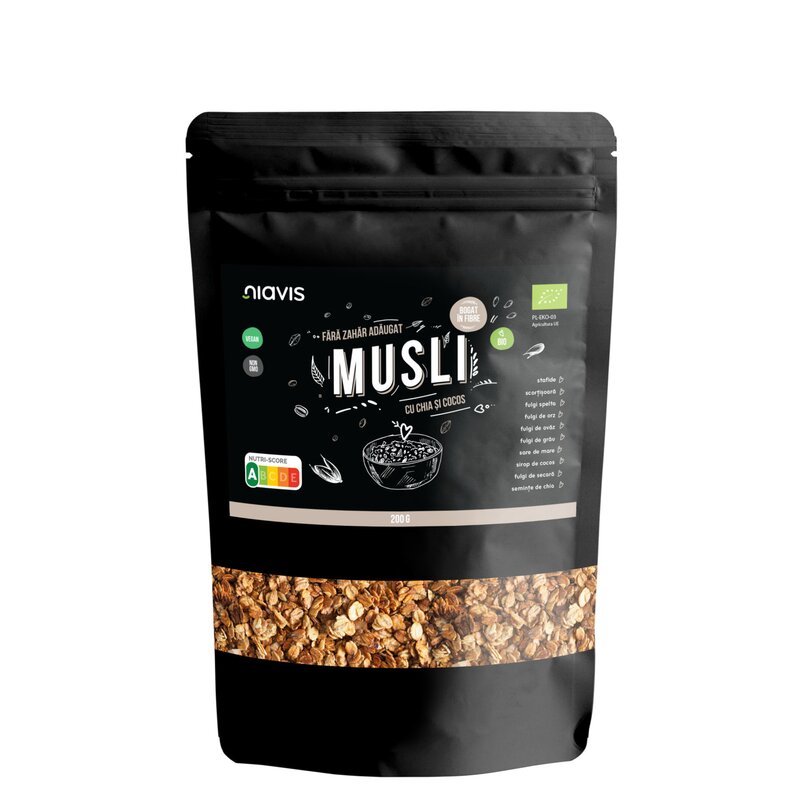 MUSLI CU CHIA SI COCOS, BIO, 200G, NIAVIS