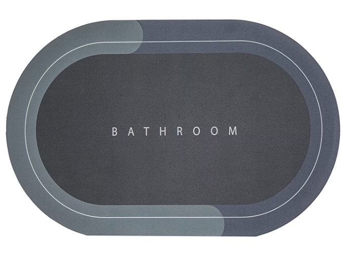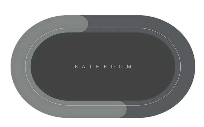 Covor de Baie GRI Antiderapant si Absorbant Model Bathroom Oval 58 x 78 cm