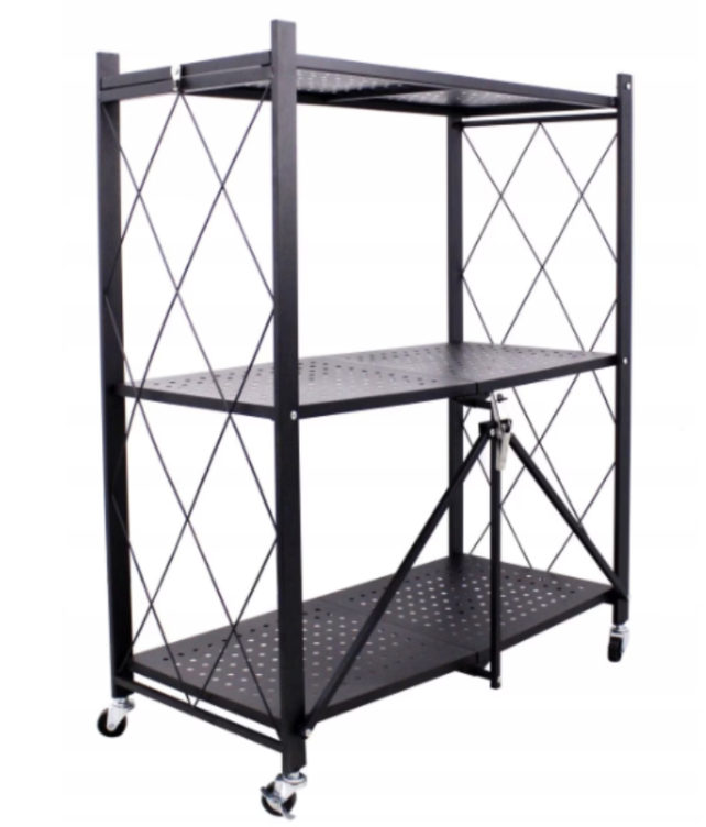 Raft depozitare metalic pliabil pe roti 3 polite 71,5 x 39 x 89 cm