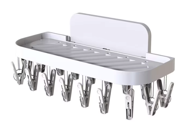 Suport autoadeziv pentru baie cu 17 cleme pliabil 36 x 15 x 14.5 cm alb