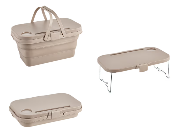 Lighean pliabil 2 in 1 cu masuta picnic 8L BEJ