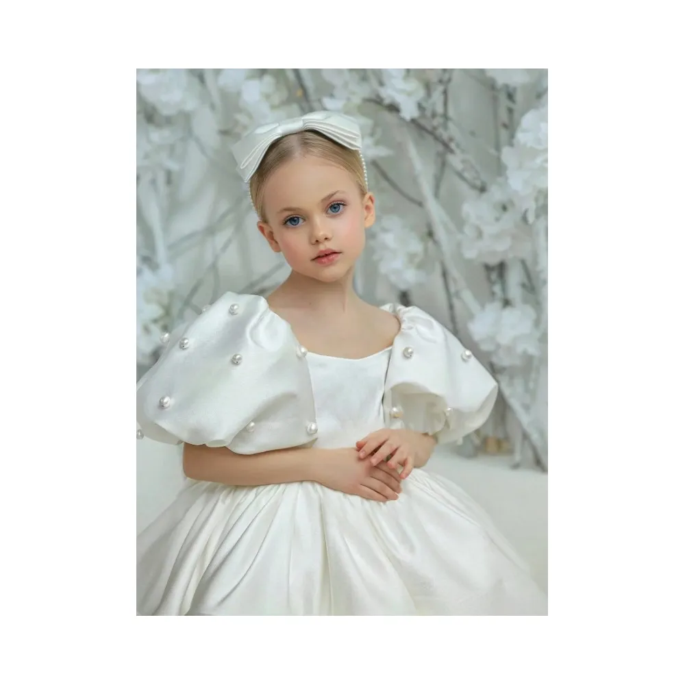 Rochie Alba cu Perle de Printesa