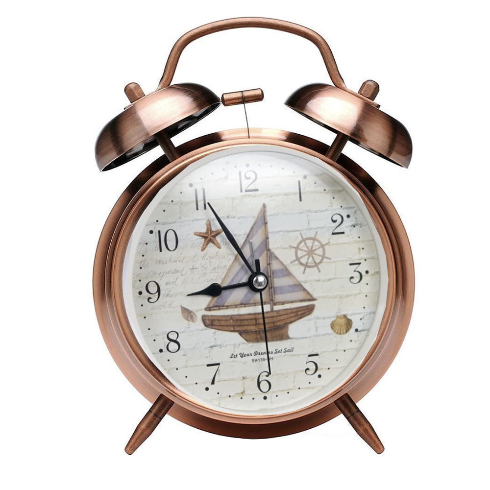 Ceas de masa desteptator Pufo Sail Dreams cu buton de iluminare cadran, metalic, 16 cm, aramiu