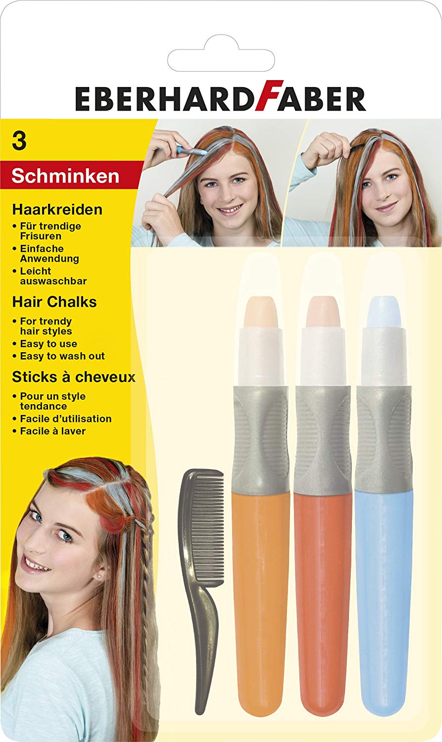 Creion pentru par, culori basic, 3buc/set + pieptan, Eberhard Faber