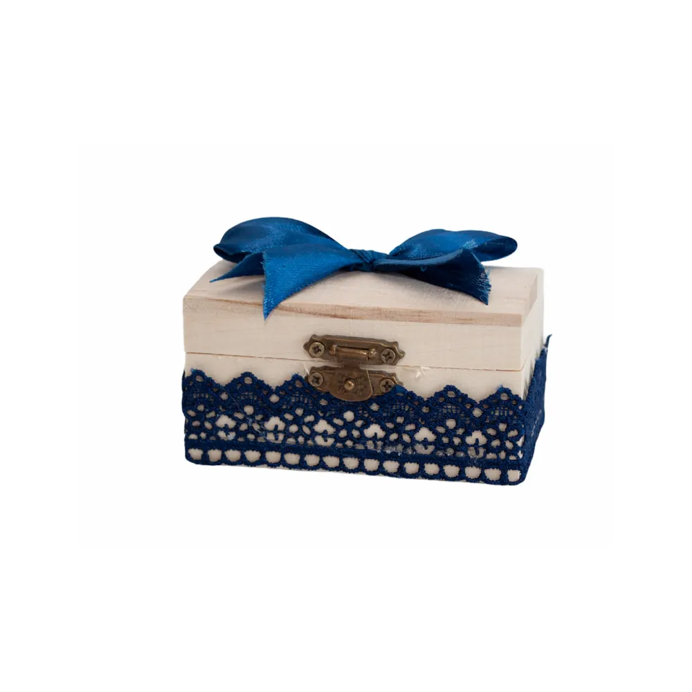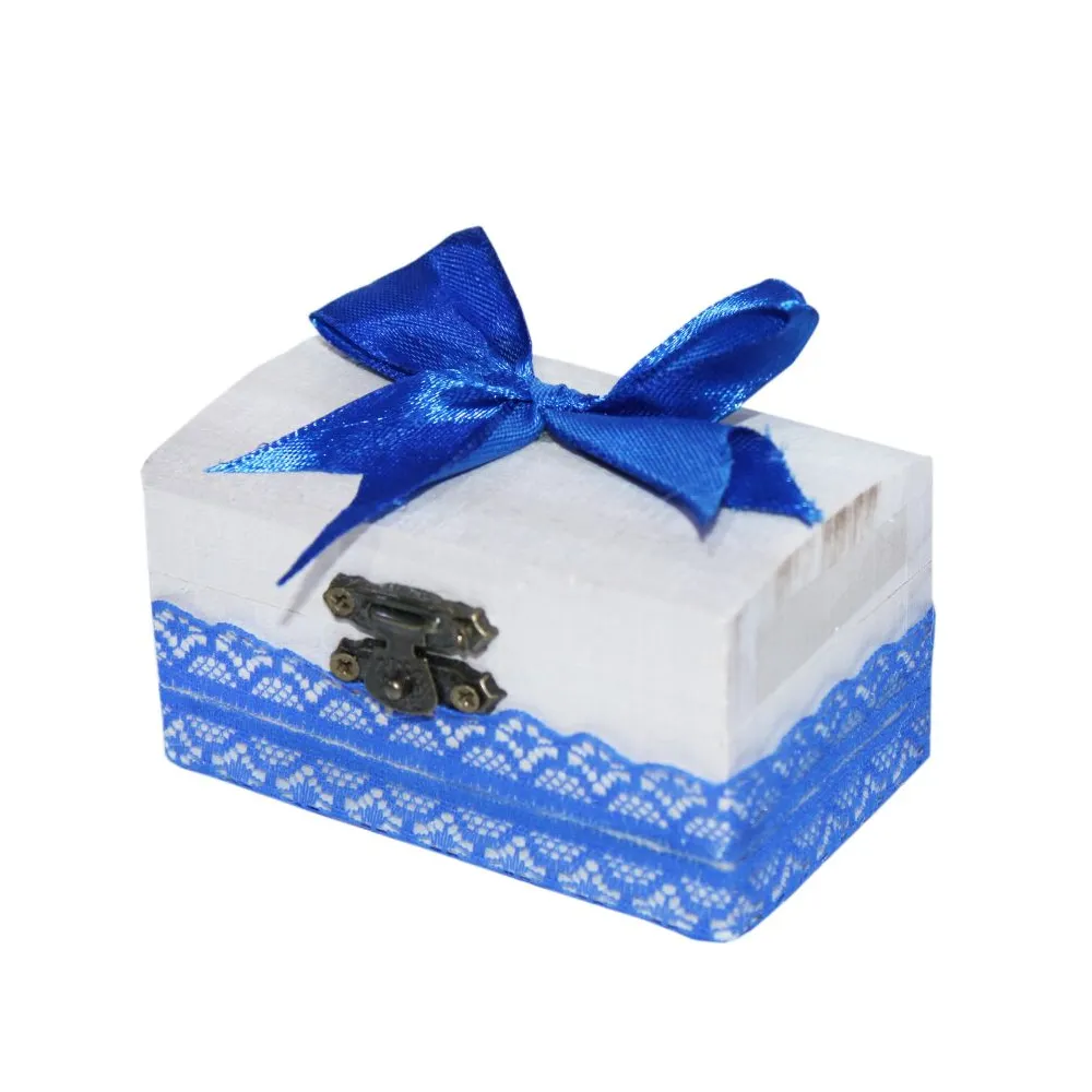Cutiuta Cufar Din Lemn Pentru Prima Suvita a Bebelusului, Albastru cu dantela - CPS11