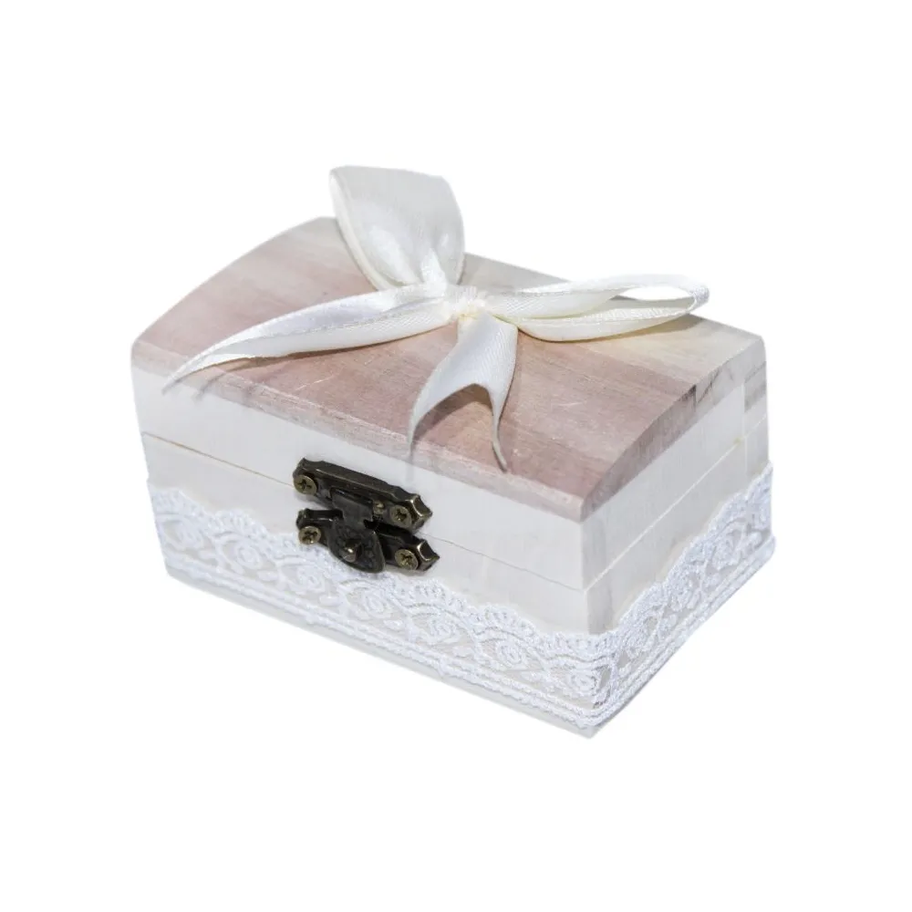 Cutiuta Cufar Din Lemn Pentru Prima Suvita a Bebelusului, Ivoire cu Dantela - CPS08