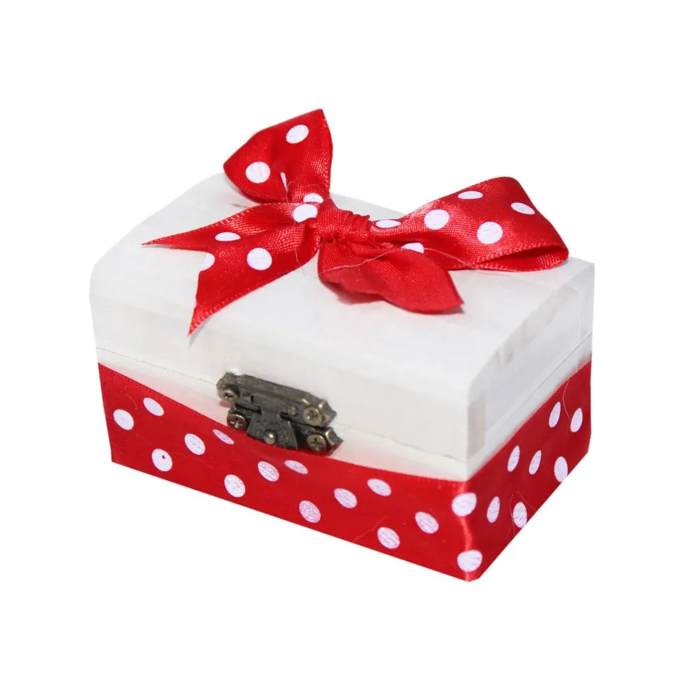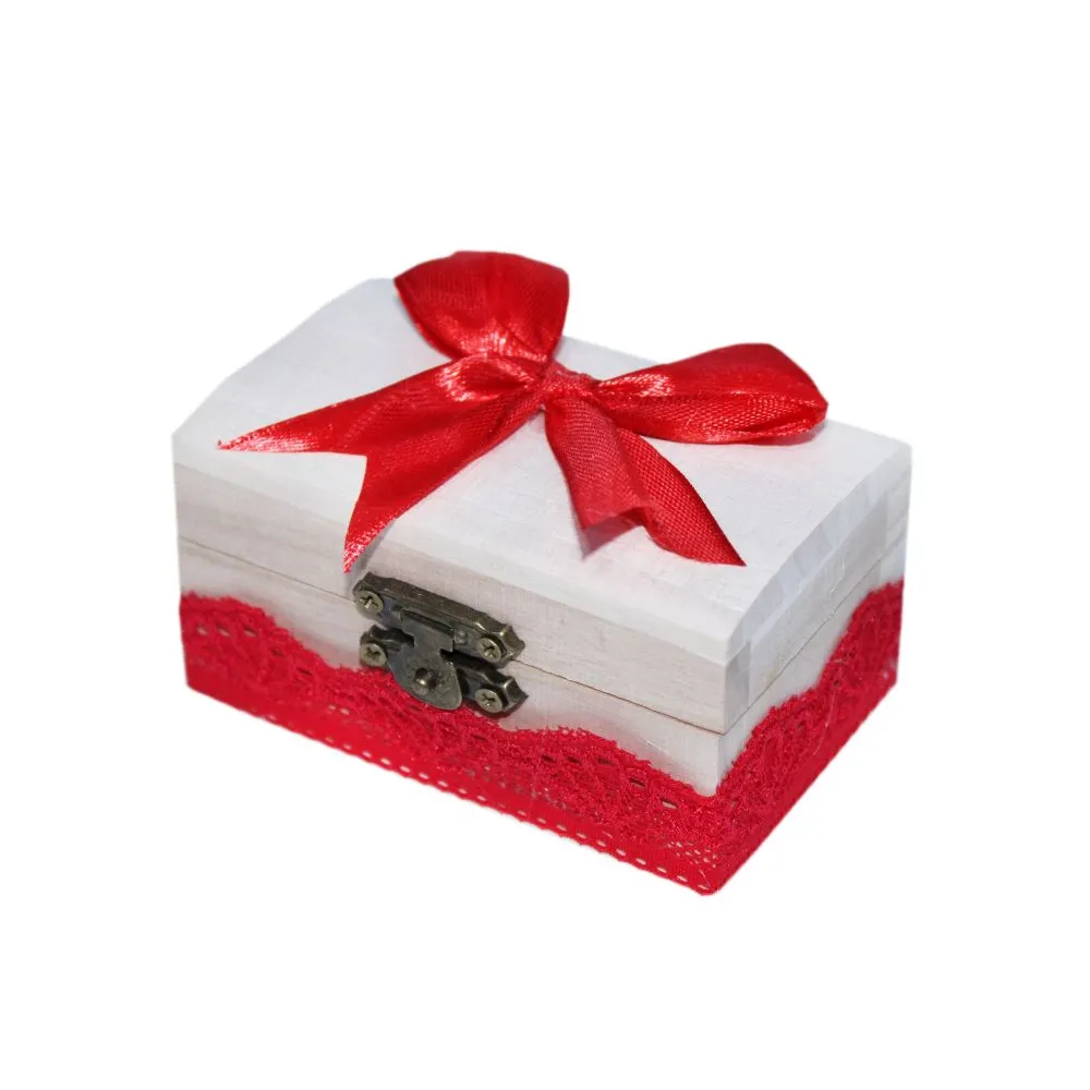 Cutiuta Cufar Din Lemn Pentru Prima Suvita a Bebelusului, Rosu cu Dantela - CPS09