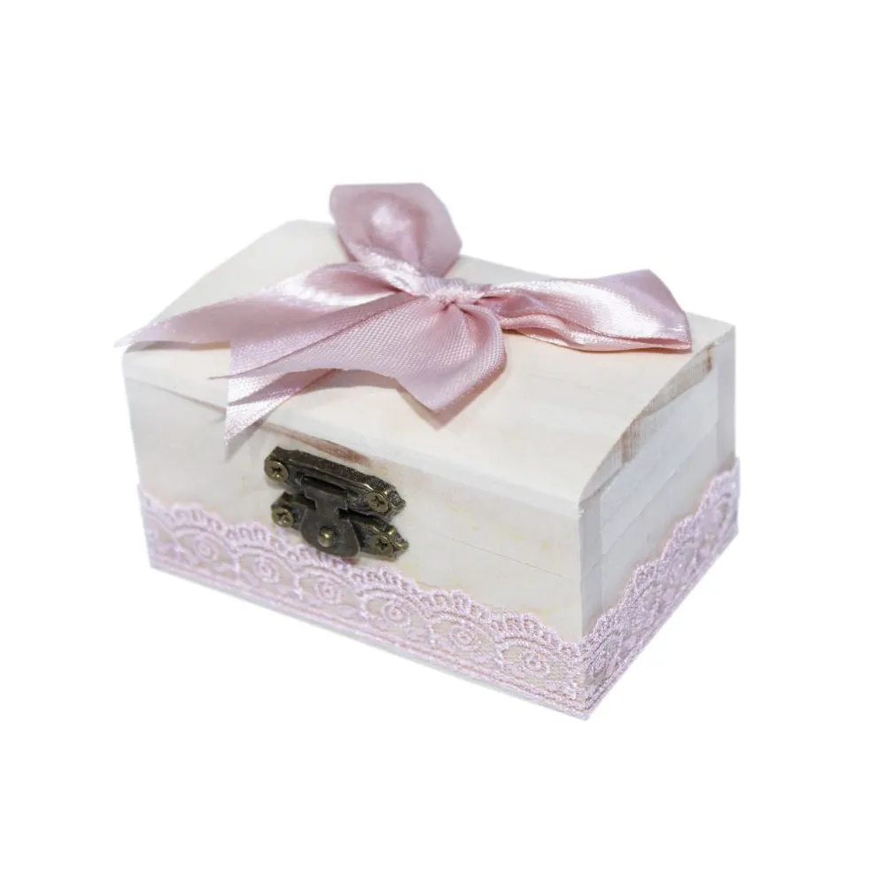 Cutiuta Cufar Din Lemn Pentru Prima Suvita a Bebelusului, Roz Pudra cu Dantela - CPS10