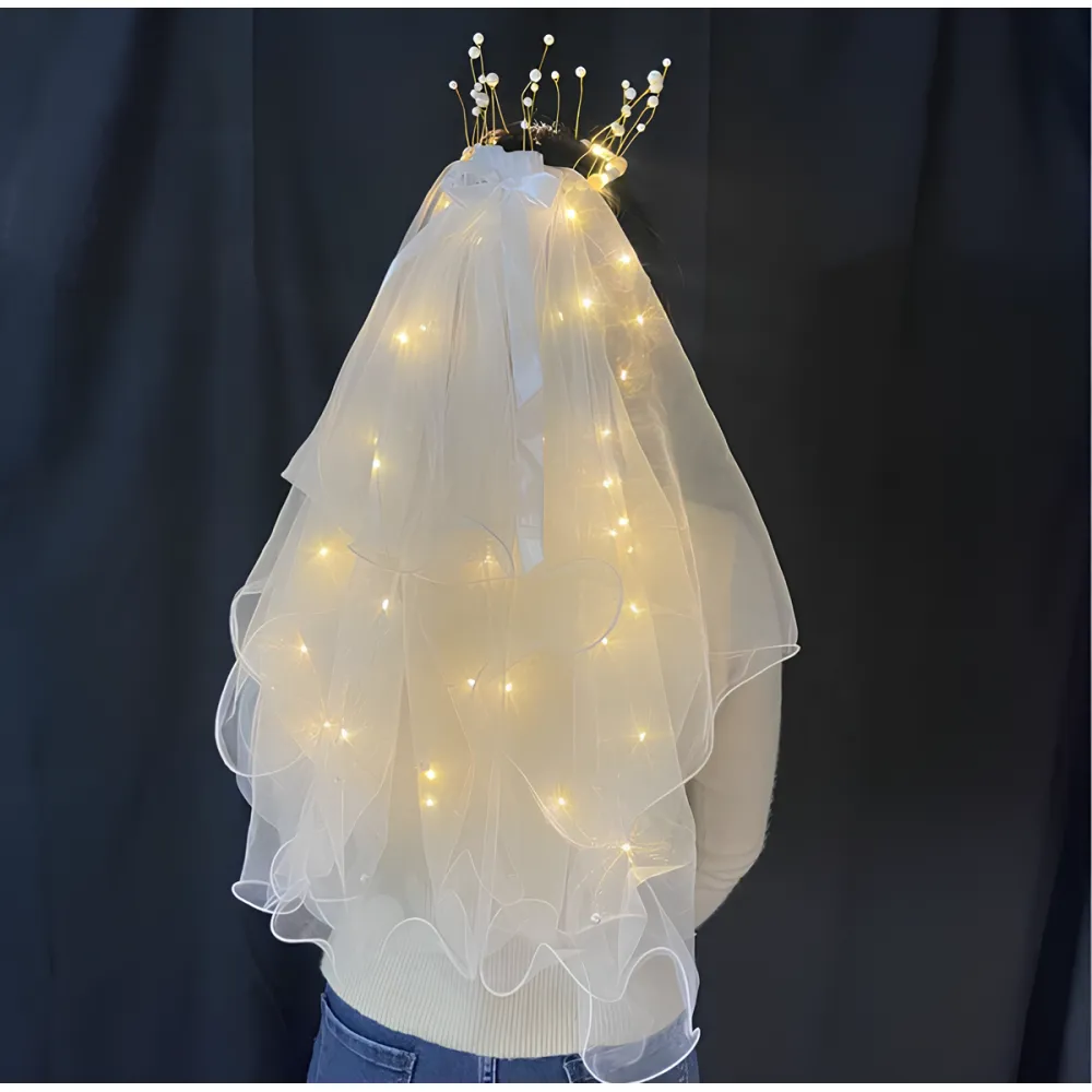 Coroana cu Voal de Mireasa si Luminite, Alb - 26343B