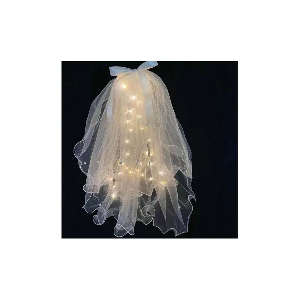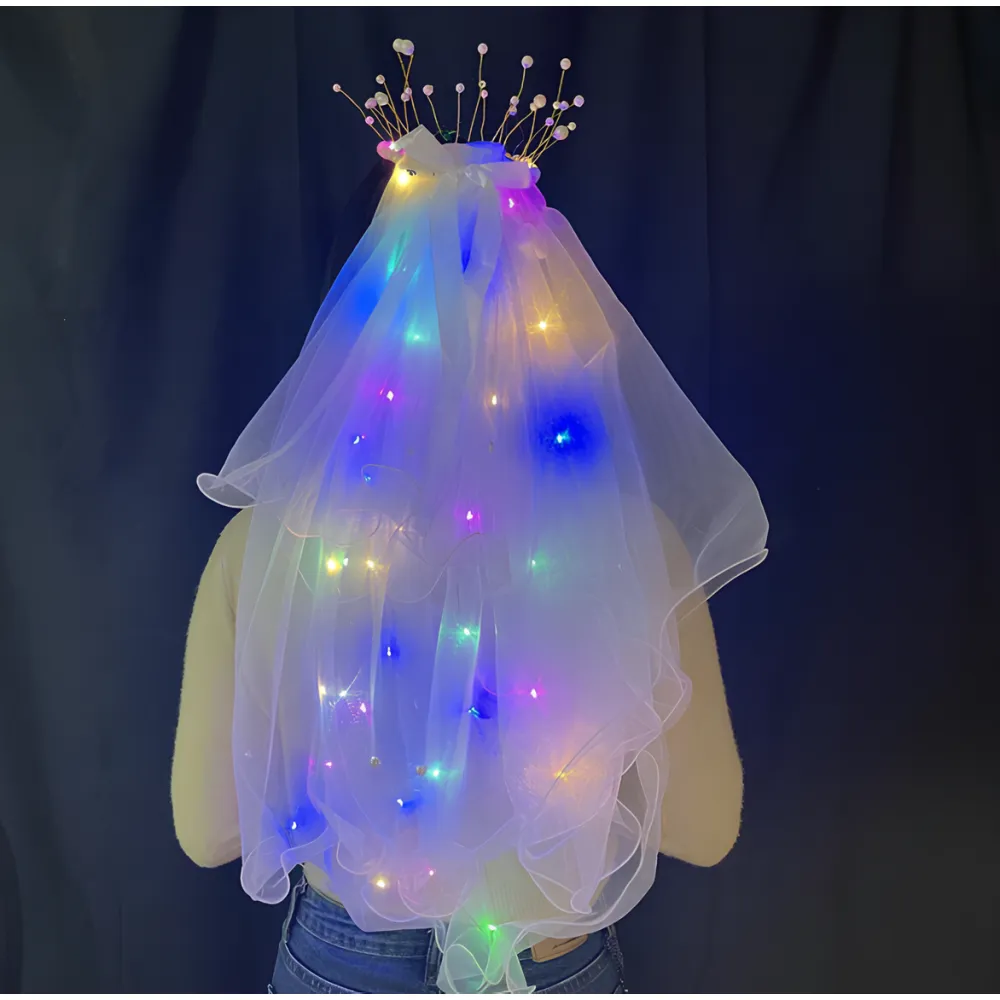Coroana cu Voal de Mireasa si Luminite, Alb - 26343D