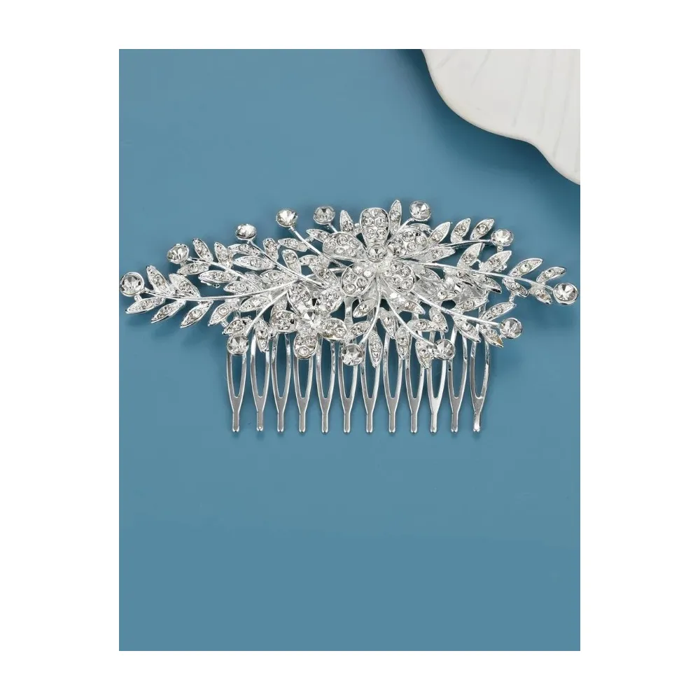 Pieptene de Par Mireasa cu Strasuri - tip Floare - 6 x 11 cm-38170