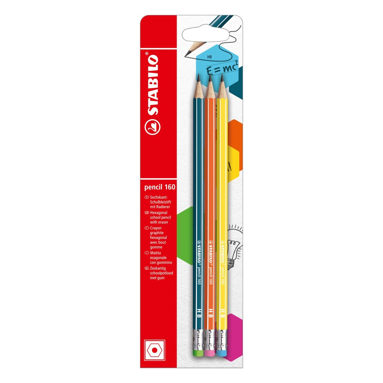 Creion cu guma, HB, corp roz-bleu-portocaliu, 3buc/set, 160 Stabilo SWB5050010