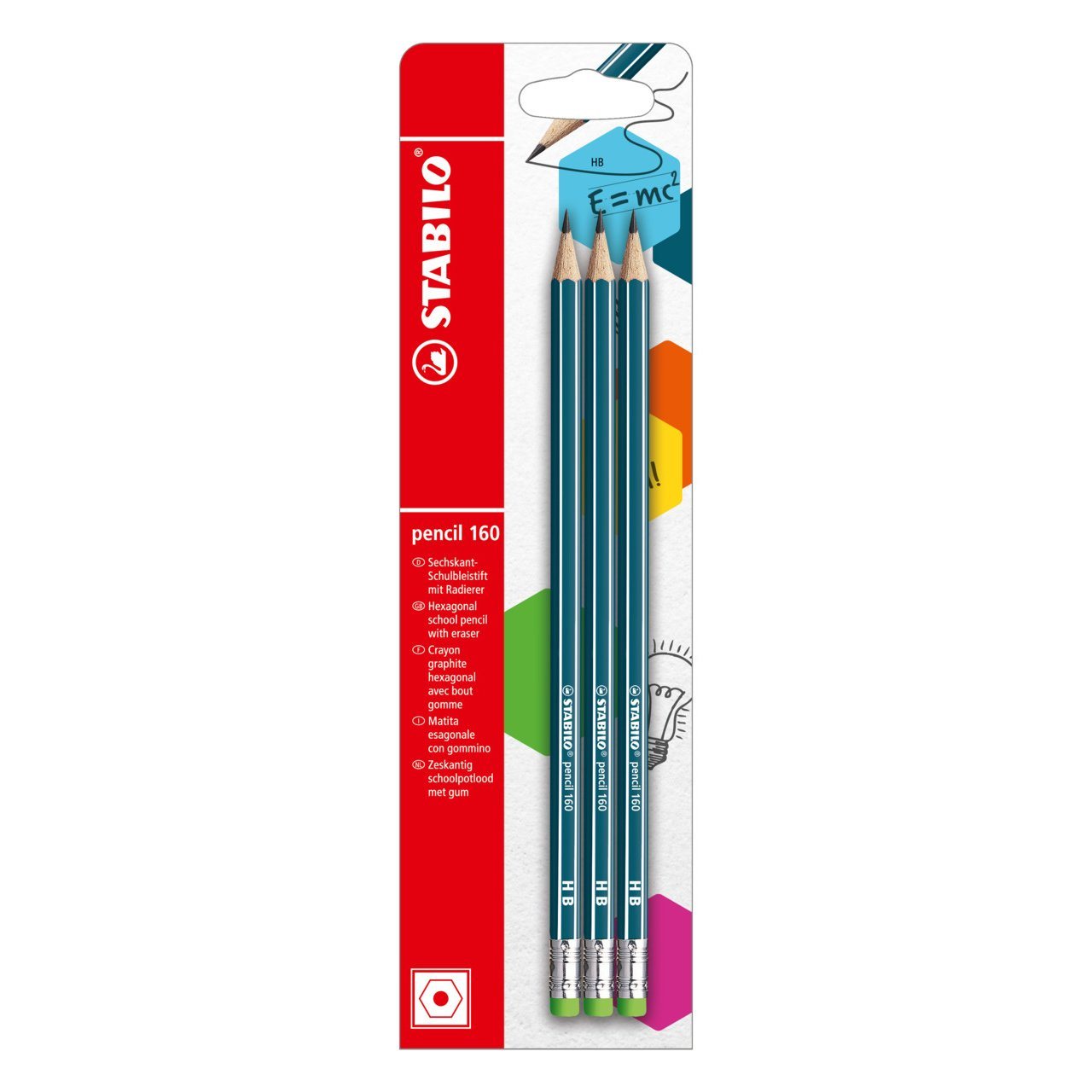 Creion cu guma, HB, corp verde petrol, 3buc/set, 160 Stabilo SWB5073310