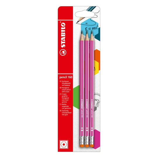 Creion cu guma, HB, corp roz, 3buc/set, 160 Stabilo SWB5073510