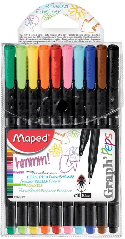 Liner 10 culori/set, varf 0,4mm, Graph'Peps Maped