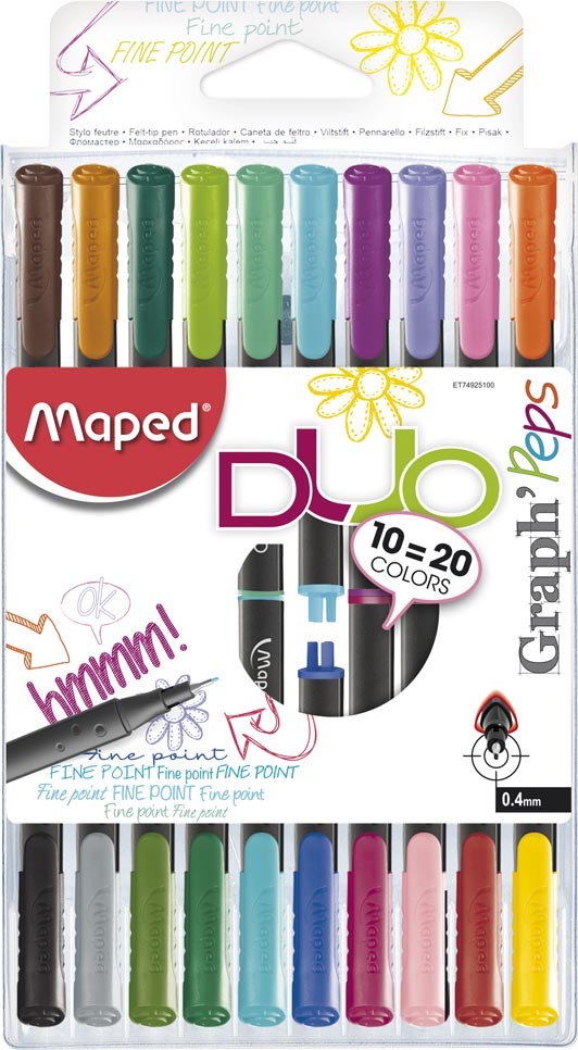 Liner 2 varfuri, bicolor, 20culori, 10bucati/set Graph'Peps Duo Maped
