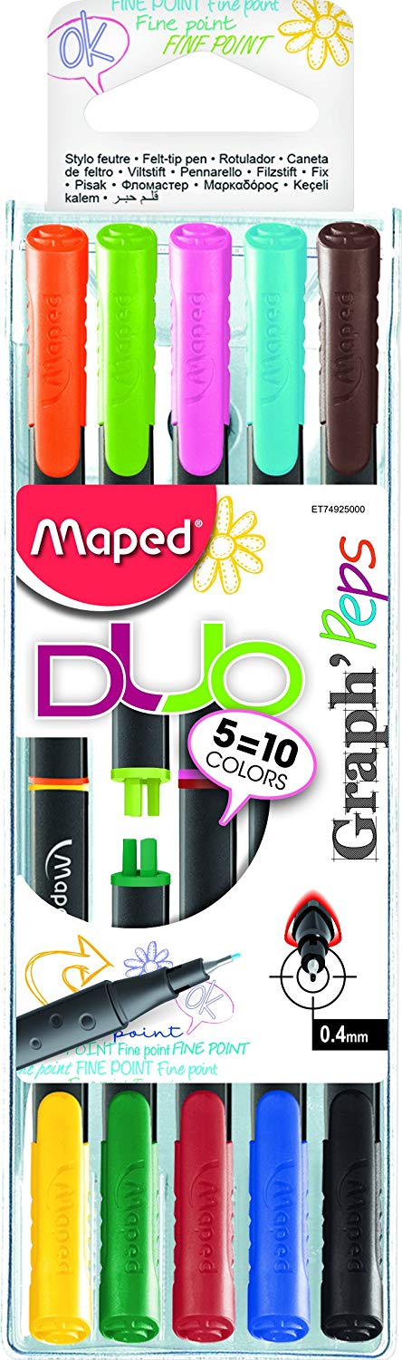 Liner 2 varfuri, bicolor, 10culori, 5bucati/set Graph'Peps Duo Maped